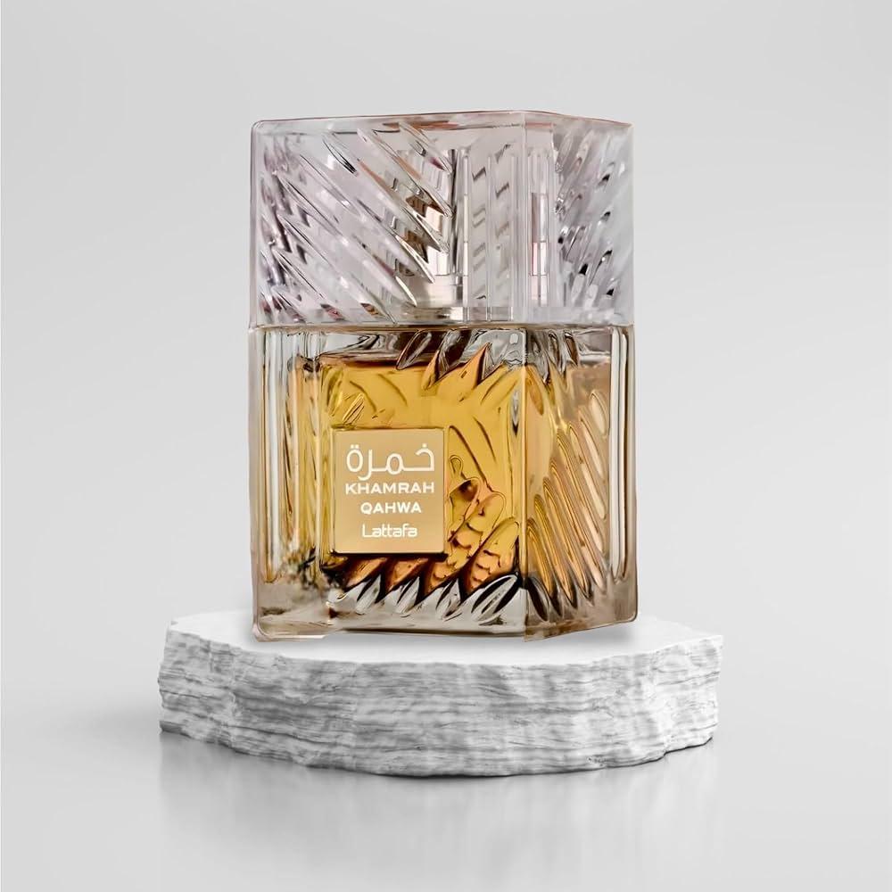 Khamrah Qahwa by Lattafa Perfumes is a fragrance for women and men. This is a new fragrance. Khamrah Qahwa was launched in 2023. Top notes are Cinnamon, Cardamom and Ginger; middle notes are Praline, Candied Fruits and White Flowers; base notes are Vanilla, Coffee, Tonka Bean, Benzoin and Musk.